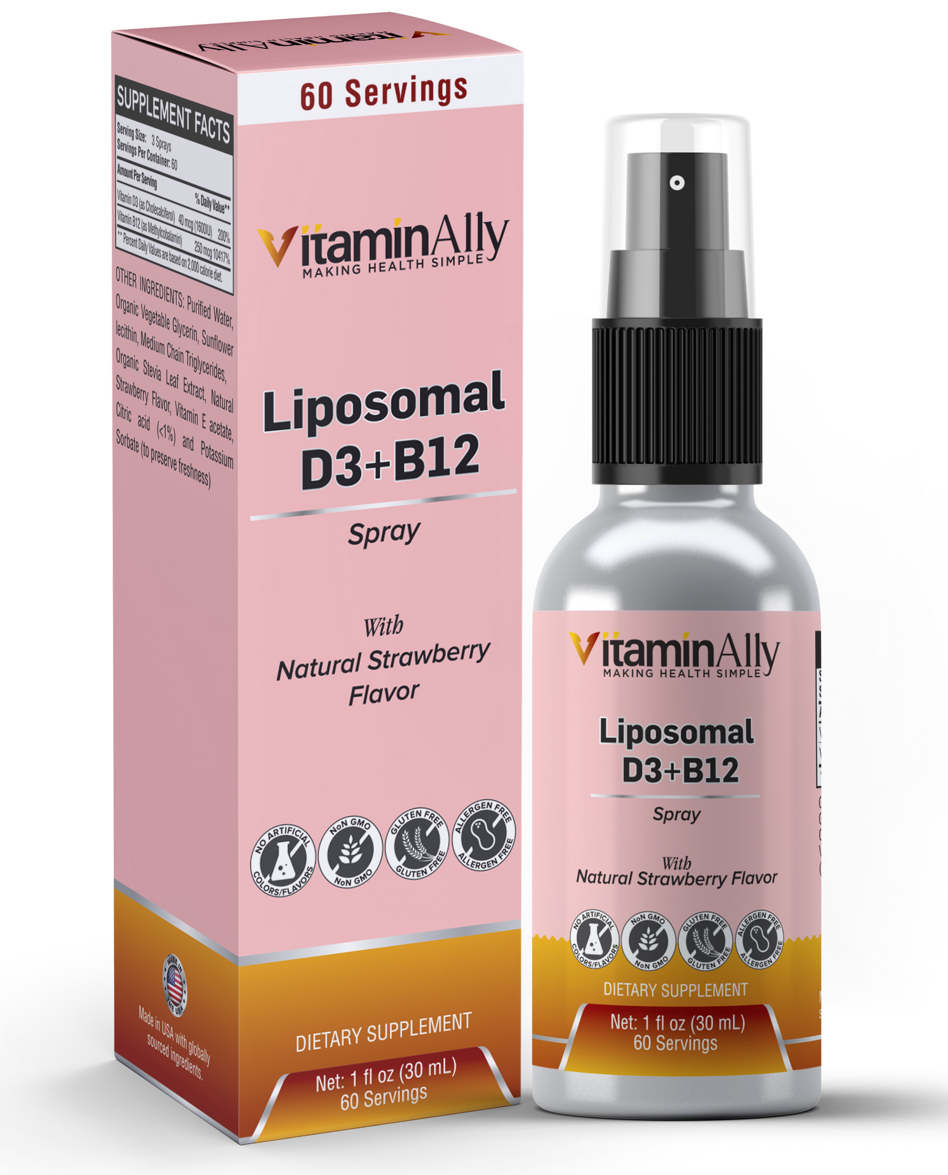 Our Liposomal D3+B12 Spray is made with only the highest quality ingredients and is free from any artificial flavors, colors, or sweeteners. It's also non-GMO, gluten-free and free from common allergens.